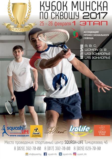 На подготовку к первом рейтинговому турниру 2017 года у белорусских сквошистов было целых два месяца. Достаточно времени, чтобы прийти в форму после новогодних праздников и межсезонного отпуска. На первом этапе Кубка Минска, который состоялся 25-26 февраля 2017 года в клубе Squash Life, было зарегистрировано рекордное количество заявок.